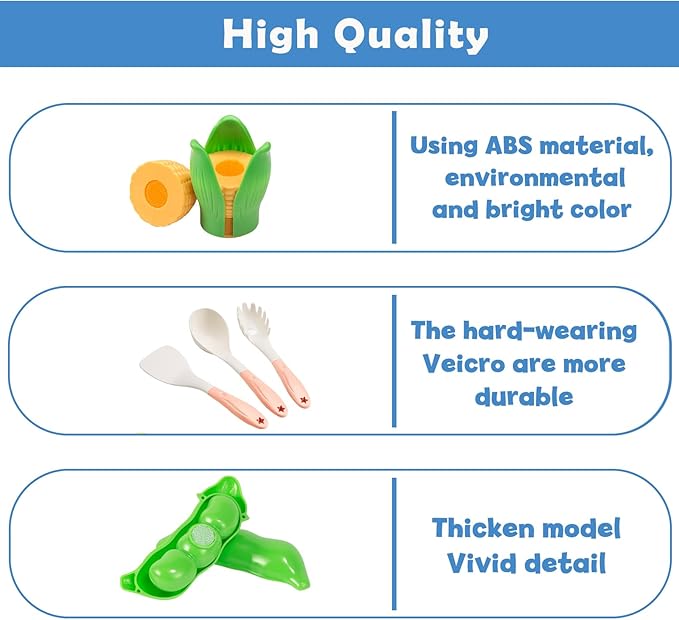 - 【Safe & Sturdy Material】Our cookware toy kitchen sets was made of ABS materials, they are drop-resistant, easy to clean without any BPA or harsh materials to ensure they are both safe and sturdy for everyday play. Our knife set is not easy to break off, both safe and made to handle daily space for kids