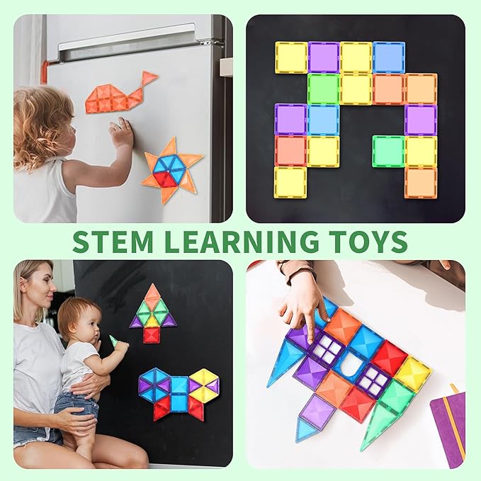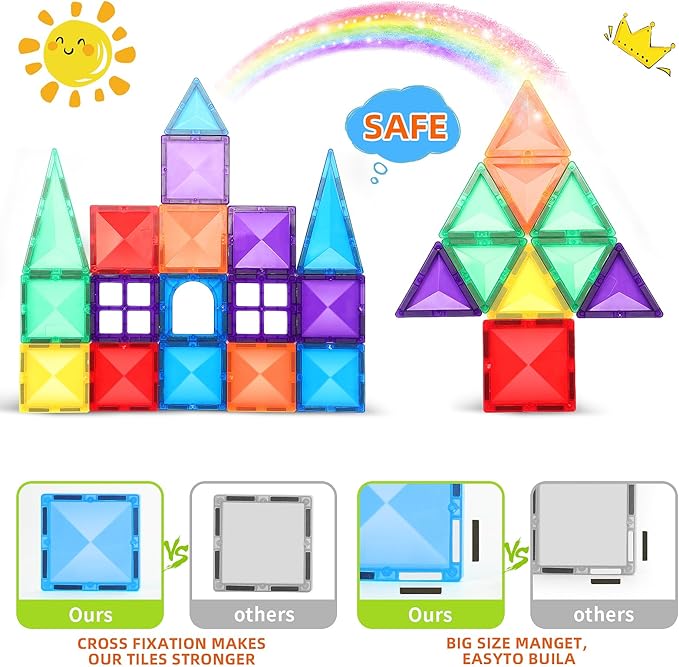 - STRONG MAGNETS MORE STABLE:Our kids magnetic tiles building blocks with larger and stronger magnets inside ensure a secure connection,allowing the magnetiles construction of more intricate shapes without collapsing,bringing your kids age 3-4 3-5 5-6 a better play experience.Let children create all sorts of imaginative masterpieces.