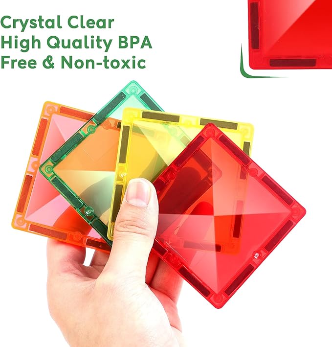 - SAFE AND DURABLE:Our magnet blocks for toddlers kids ages 4-8 are made of safe and durable food-grade ABS plastic material.Smooth surface and round edge design won't scratch or hurt little hands.The magnet building blocks are sealed to keep the magnetic building tiles from breaking or swallowing.This kids magnetic toys can last for years.