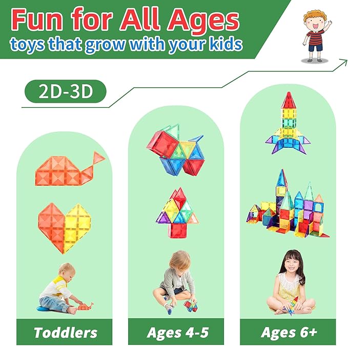 - GIFT IDEAS FOR HOLIDAY:Educational toys for 2 3 year old boys girls are suitable for any festivals and occasions,like birthdays,Christmas,Halloween Easter,Preschool,Day Care Centers and so on.The magnet building tiles are packaged in a beautifully designed box,the right gift toys for kids ages 2-4 3-5 4-5 5-6 6-8.