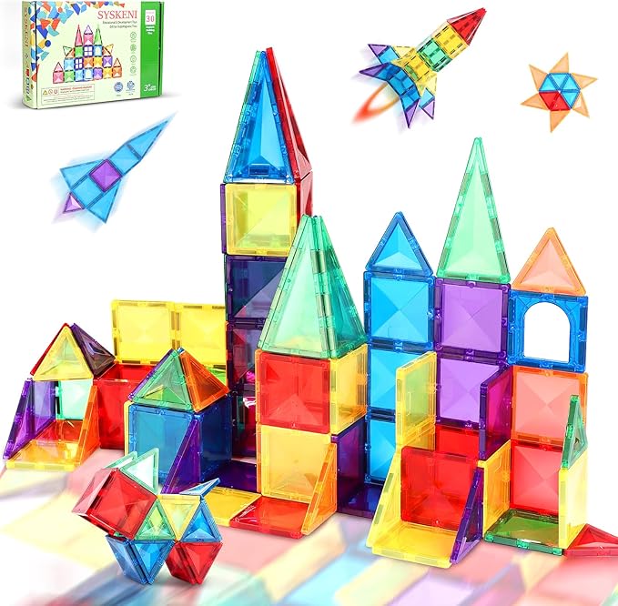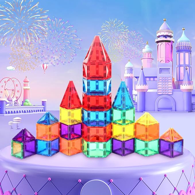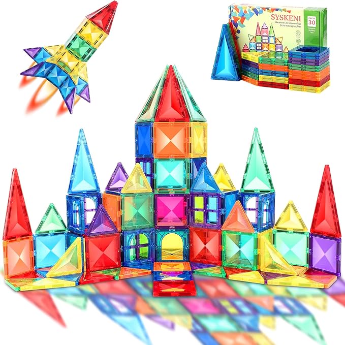Magnetic Tiles Toys for 3 4 5 6 7 8 Year Old Boy Girls Kids Beginner Set,Magnetic Building Blocks Learning Toys for Toddlers Age 2-4 3-5 4-5 5-6 6-8 Birthday Christmas Ideas (30PCS Colourful)