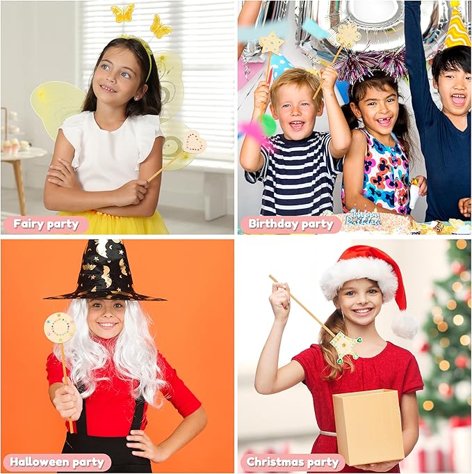 - Christmas Crafts: Great for Christmas-themed activities, unfinished wooden princess wands can be decorated with red, green and gold acrylic paints, glitter, and holiday stickers. Allow kids to craft their own accessories and spread Christmas fun, create unforgettable Christmas memories