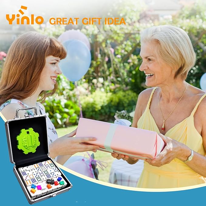 Yinlo Mexican Train Domino Set with Sound Effect, Dominoes Set for Travel, 91 Tiles Double 12 Colored Dominoes Travel Game Set with Aluminum Case