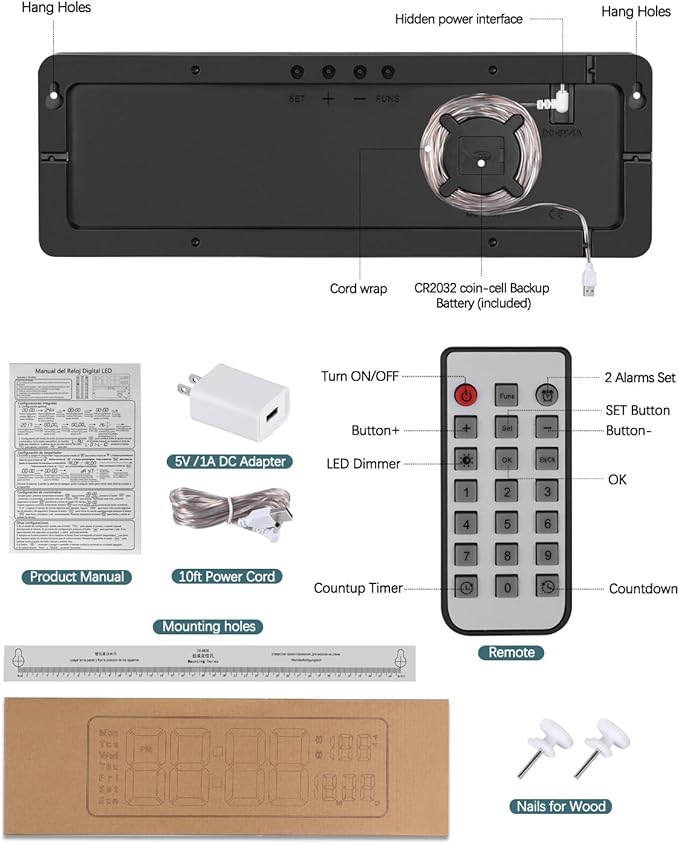 - ◑AUTO/CUSTOM BRIGHTNESS DIMMER---This digital wall clock has a display with 10 levels of adjustable brightness. You can easily adjust it to your preferred level using the remote control. Plus, it has a built-in light sensor that automatically adjusts the brightness based on the ambient light in the room.