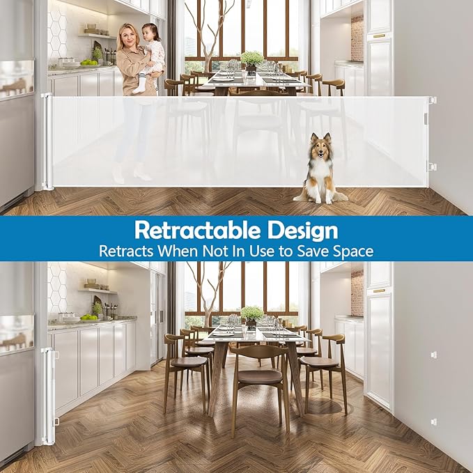 - Flexible Retraction for Space-Saving: Our retractable dog gate smoothly retracts when not in use or when guests visit, offering both space-saving benefits and convenient access.