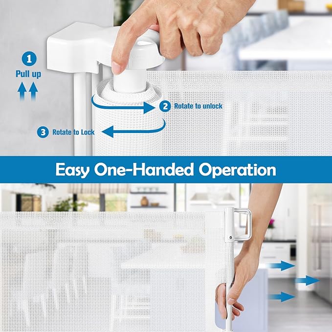- Gentle Mesh Baby Gate: The soft mesh fabric minimizes the risk of injury upon impact, while also resisting scratches from pet claws, creating a safe environment for both kids and pets.