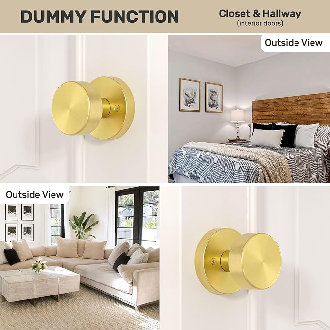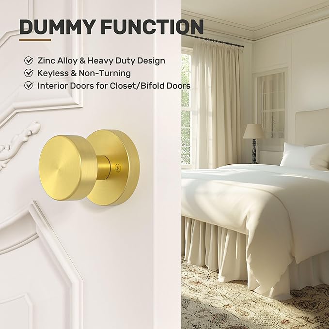 - 【Dummy Function】Dummy door knobs interior are suitable for closets, bi-fold doors, double doors or other doors that require a dummy door handle. Modern style, Satin brass finish.