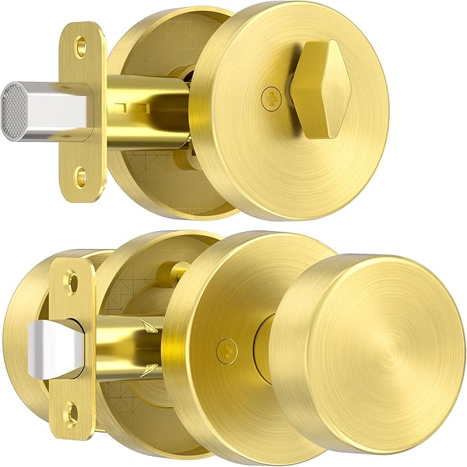 - 【Deadbolt Function】Front door lock and deadbolt combo sets are suitable for exterior doors or other door that require a front door handle. Modern style, Satin brass finish.