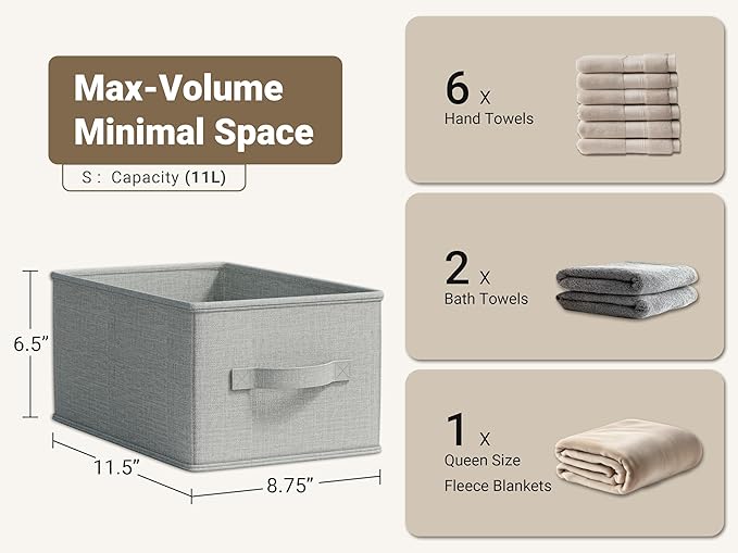 - LARGE CAPACITY: Measuring 11.5x8.75x6.5in, these fabric bins offer a generous 16L capacity, making it easy to store and organize bulky items like clothes, toys, books, and magazines.