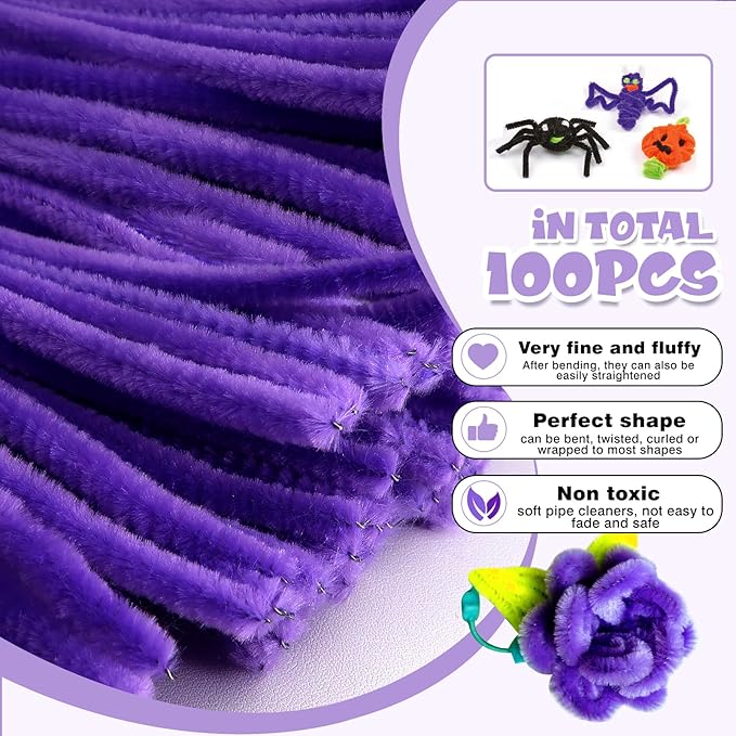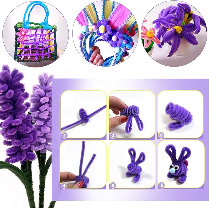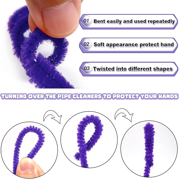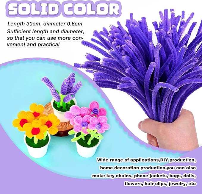 - Size: 100pcs purple pipe cleaners; 0.24 X12 inch (6 mmx300 mm). Enough quantity to meet your various needs of DIY craft creations