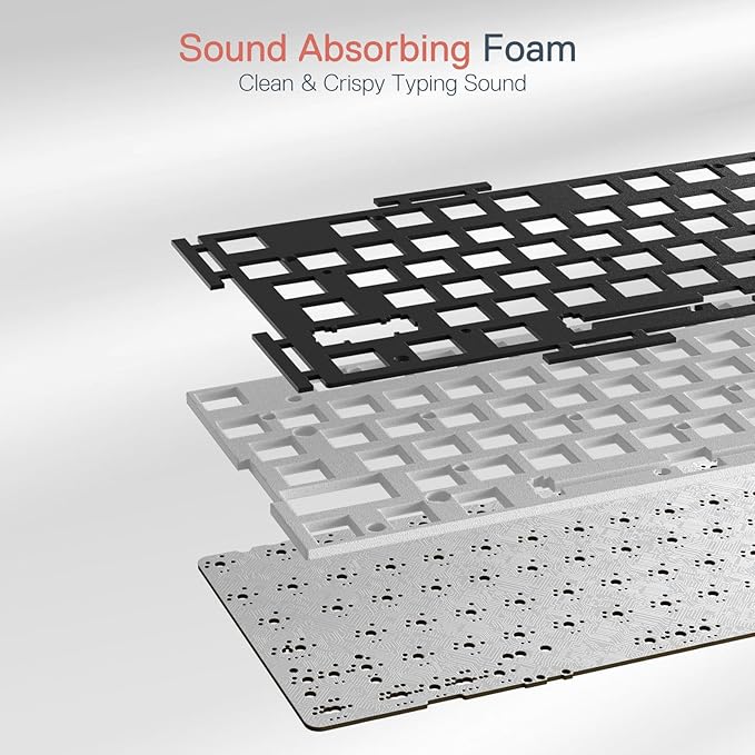 - Hot-Swappable Red Switches - Hot-swappable with almost all switch types in the market no matter 3-pin or 5-pin. Quiet basic linear mechanical switches, soft key travel makes every click easy to register. Along with 3.5mm sound absorbing foam, delivers a clear and crisp typing sound with no sick noise.