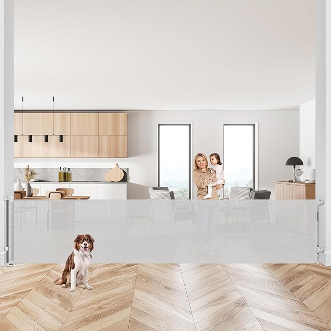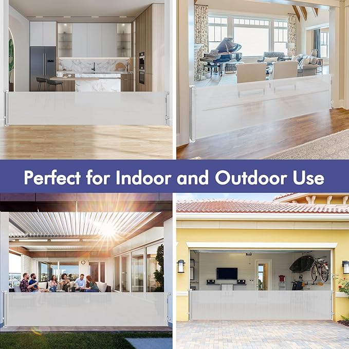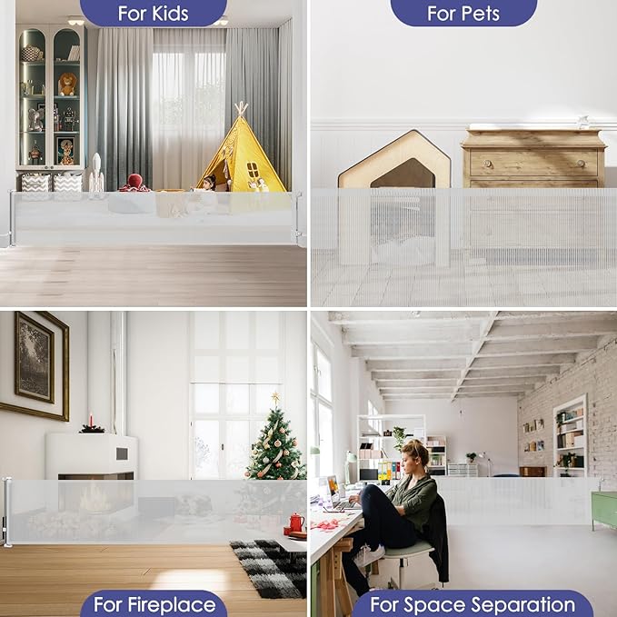 - [Effective Barrier] KISKIZ retractable gates for kids or pets are a versatile home security solution. Whether you want to create a safe baby fence play area for your baby or keep your pets out of certain areas, this retractable fence has got you covered.