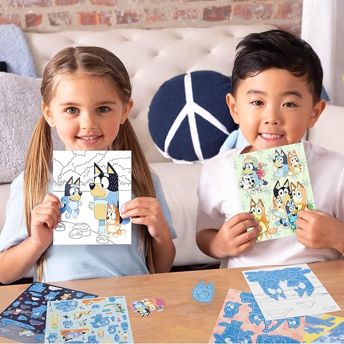 - SET INCLUDES: 1 Bluey Scratching Coin, 1 Art Pad with 2 Sheets of Scratch Art Bluey Stickers, 5 Scratch Art Sheets & 2 Scratch Art Punch-Out Sheets (7 in. x 8 in.)