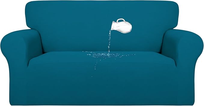PureFit 100% Dual Waterproof Couch Cover Slipcovers for Couches and Sofas - Stretch Non Slip Fleece Sofa Covers Washable, Leakproof Furniture Protector for Kids, Pets, Dog (Loveseat, Peacock Blue)