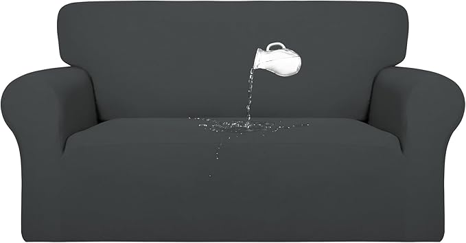PureFit 100% Dual Waterproof Couch Cover Slipcovers for Couches and Sofas - Stretch Non Slip Fleece Sofa Covers Washable, Leakproof Furniture Protector for Kids, Pets, Dog (Loveseat, Dark Gray)