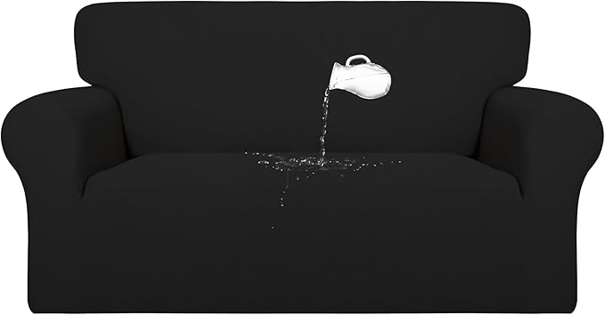PureFit 100% Dual Waterproof Couch Cover Slipcovers for Couches and Sofas - Stretch Non Slip Fleece Sofa Covers Washable, Leakproof Furniture Protector for Kids, Pets, Dog (Loveseat, Black)