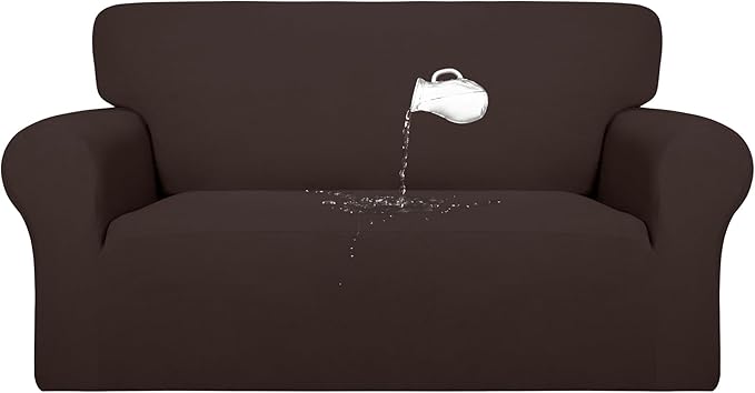 PureFit 100% Dual Waterproof Couch Cover Slipcovers for Couches and Sofas - Stretch Non Slip Fleece Sofa Covers Washable, Leakproof Furniture Protector for Kids, Pets, Dog (Loveseat, Chocolate)