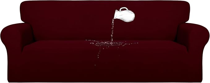 PureFit 100% Dual Waterproof Couch Cover Slipcovers for Couches and Sofas - Stretch Non Slip Fleece Sofa Covers Washable, Leakproof Furniture Protector for Kids, Pets, Dog (Sofa, Wine)