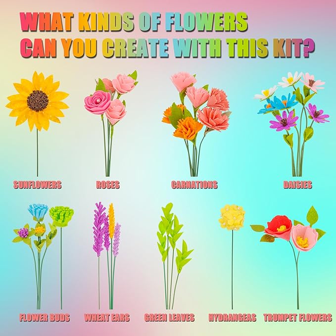 - 🎨IDEAL GIFT FOR GIRLS: The Finished Flower Bouquet Can Also Serve As a Heartfelt Gift for Special Occasions Like Mother's Day or Teacher's Day, Making This Crafts Kit An Ideal Birthday or Christmas Gift for Girls Aged 6 to 12. A Gift That Lets Them Create, Learn, and Have Fun At The Same Time.