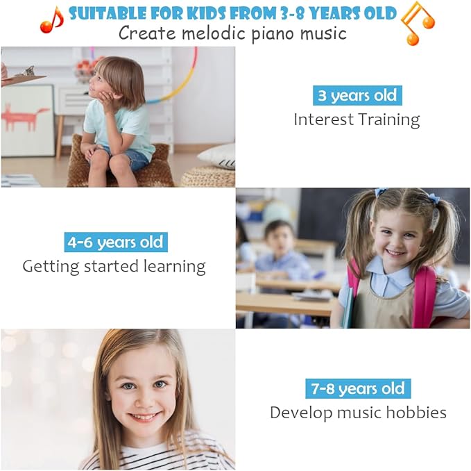 • 【Ideal Gift for Your Little One】This kids piano and stool set will be a perfect gift for kids of 3-8 years old. It will be effective in inspiring musical potential, promoting sound discrimination, improving hand-eye coordination and reducing screen time. Moreover, the piano has gained ASTM and CPSIA certification.