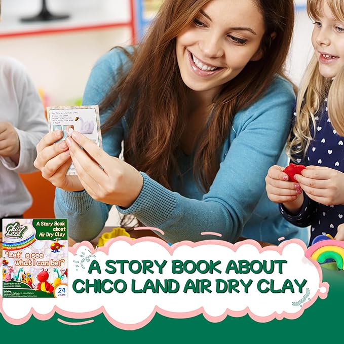Chico Land Clay Kit - 24 Colors Air Dry Clay, Gift for Boys & Girls Age 4+ Year Old, DIY Model Modeling Clay kit for Kids, with Sculpting Tools, Storage Bags, Kids Art Crafts