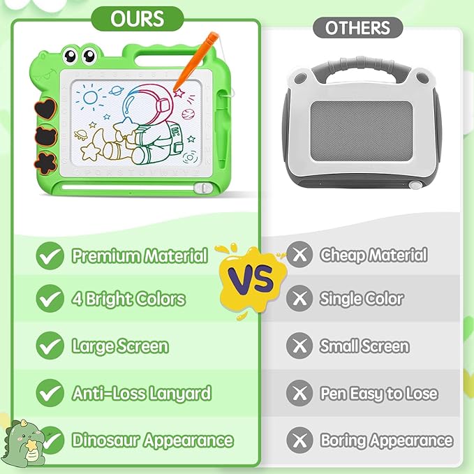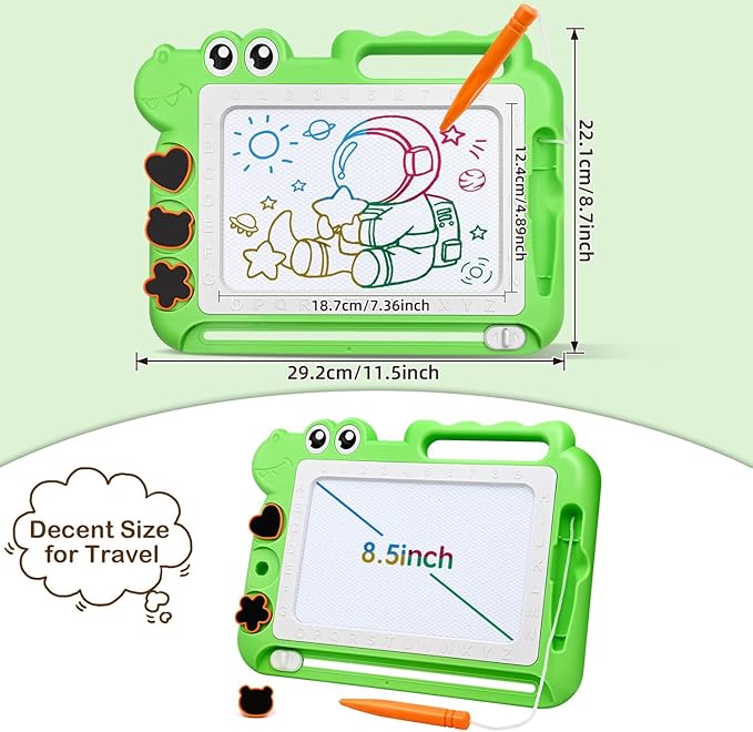 - SAFELY DECENT DRAWING AREA: Our Magnetic Drawing Pad is specially designed with the safety of your little ones in mind. Made of premium ABS, smooth edges, non-toxic, no choking small parts and meet US & EU Toy Standard, make it for children to use without any harm or worries. The drawing screen size: 7.2 X 4.8 in, giving toddler toys girls boys more room to express artistic imagination