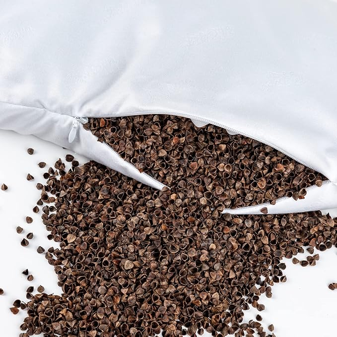 - QUALITY MATERIAL: Premium buckwheat hulls,clean and plump,warm in winter and cool in summer,offer the firm and comfy supporting to the neck curve.That can help to relieve neck pain and improve sleep.The pillow cover is made of high quality heavy weight soft fabric, which will exhibit textured and natural soft touch, not only thick and durable but also breathable and cozy.