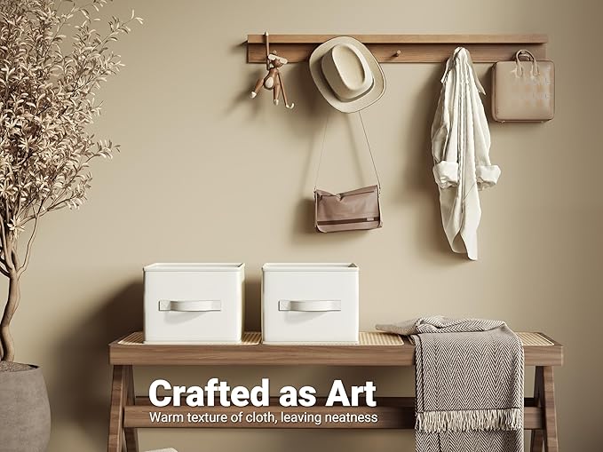 3 Pack Fabric Storage Bins for Shelves | 14¾" L*10¼" W*8¼" H Closet Storage Bins | Collapsible Closet Organizers for Clothes | Linen Clothes Bins | White & Ivory