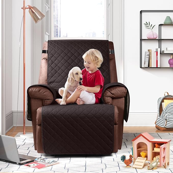 KinCam 100% Waterproof Recliner Chair Cover, Reclining Couch Covers for Pets, Dogs, Recliner Couch Slipcover Furniture Protector with Elastic Straps for Kids(28", Chocolate)
