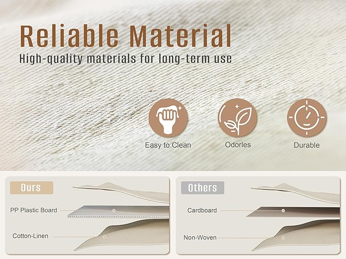 - NATURAL FABRIC: Our fabric storage bins are made of natural cotton linen fabric, offering a green and sustainable solution for your closet organization needs. They are washable and odorless, ensuring a healthy and clean environment.