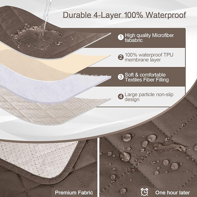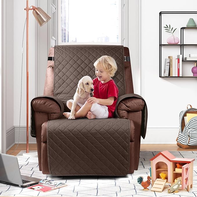 KinCam 100% Waterproof Recliner Chair Cover, Reclining Couch Covers for Pets, Dogs, Recliner Couch Slipcover Furniture Protector with Elastic Straps for Kids(28", Brown)