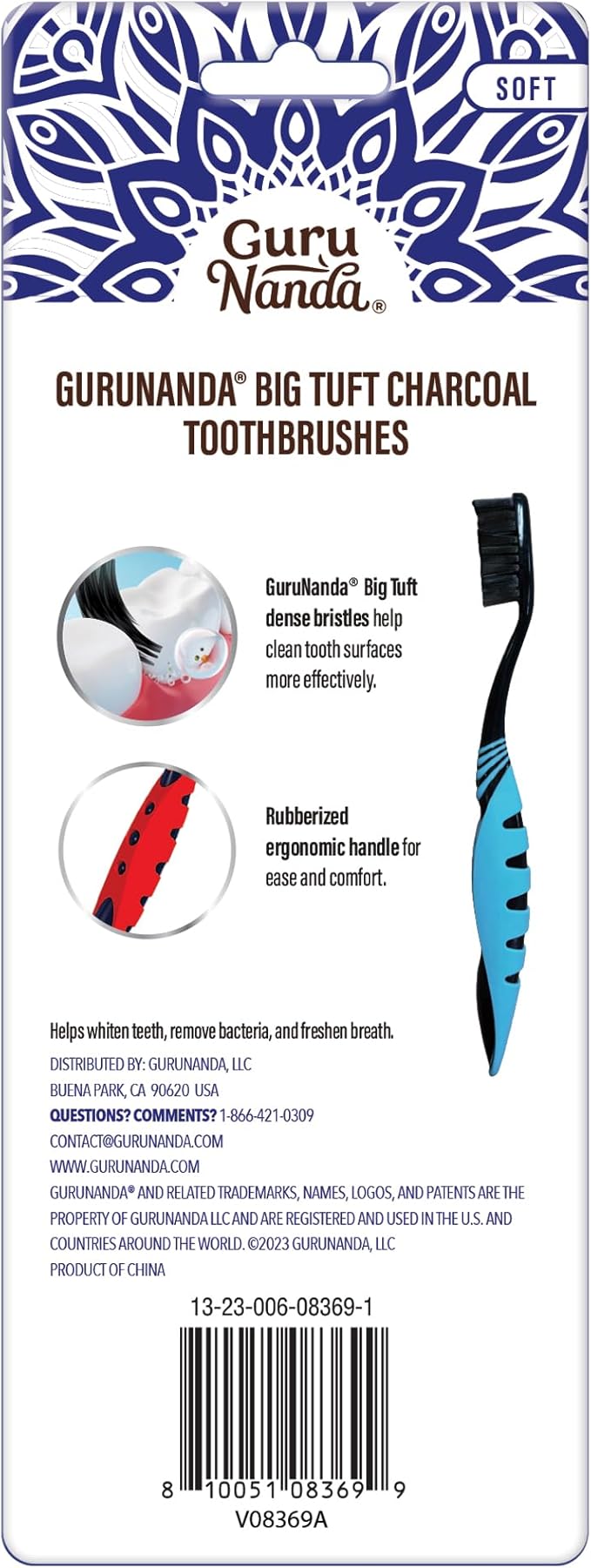 - SOFT BRISTLES: GuruNanda's Charcoal Infused Toothbrushes have soft big tuft dense bristles to help clean tooth surfaces more effectively while being easy on the gums. Experience the transformative effects as these bristles help to diminish surface stains and delicately polish your teeth, leaving them smoother and more radiant.