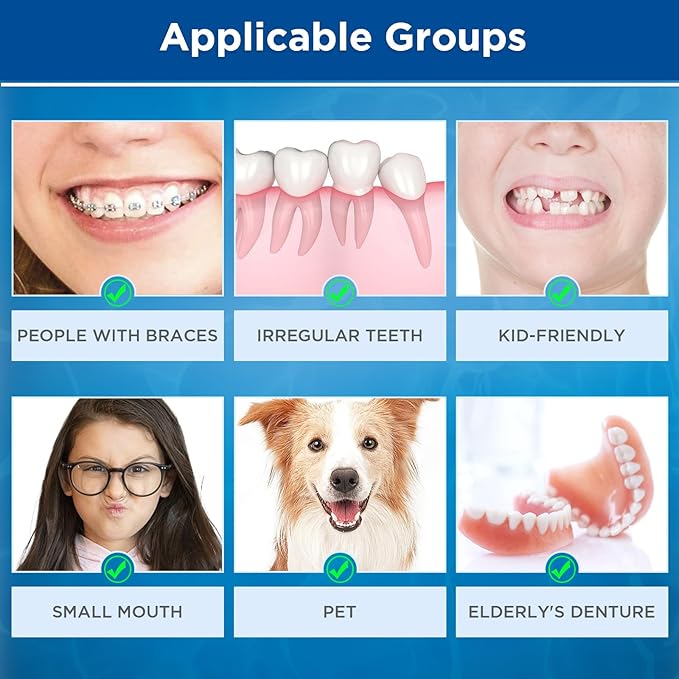 - Soft Feel: Ultra soft bristles brush clean around gum line well, protect sensitive gums and keep your teeth from damage. Also great for cleaning irregular teeth, and pets' teeth.