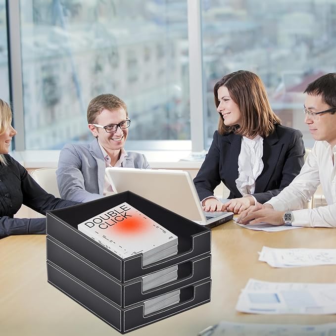 - If you are looking for an attractive desk organizer for your home or work office, this product will certainly fit your needs. This modern, handsome document tray allows you to declutter your desk and surrounding workspace. It offers easy access to letters with the notched front. It's nice to separate the crucial papers from the less significant.