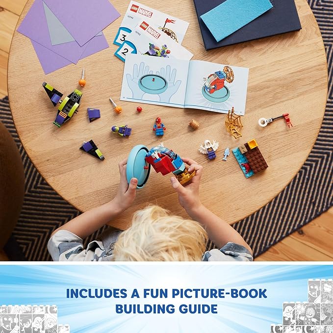 - Marvel heroes and vehicle toy set – Includes Spidey, Green Goblin and Ghost-Spider minifigures for action play, plus a large Starter Brick to make building quick and fun