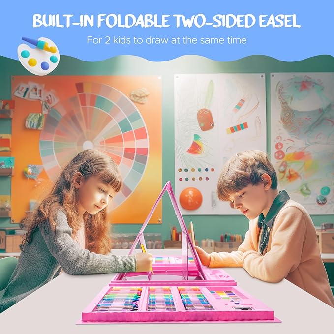 - 【🖍Double-sided design】The Art Box comes with a built-in double-sided art easel,allowing two kids easy to color and drawing anywhere at the same time,promoting social in a fun and engaging way.Your girls can enjoy playful moments and nurture friendships with their friends as they create together.
