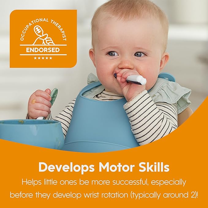 - DESIGNED FOR LITTLE HANDS AGES 6-18 MONTHS: This clever Pre-Spoon, tailored for tiny hands, eliminates scooping and balancing struggles. Best of all, there's no wrong way to hold it, thanks to its secret: a thick contoured handle that provides a secure, no-slip grip.