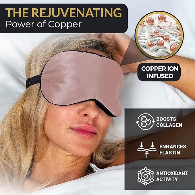 - SAVE TIME AND EFFORT with a luxurious silk sleeping mask that features the anti-aging benefits of copper. Easy eye skin care without needing expensive eye creams.