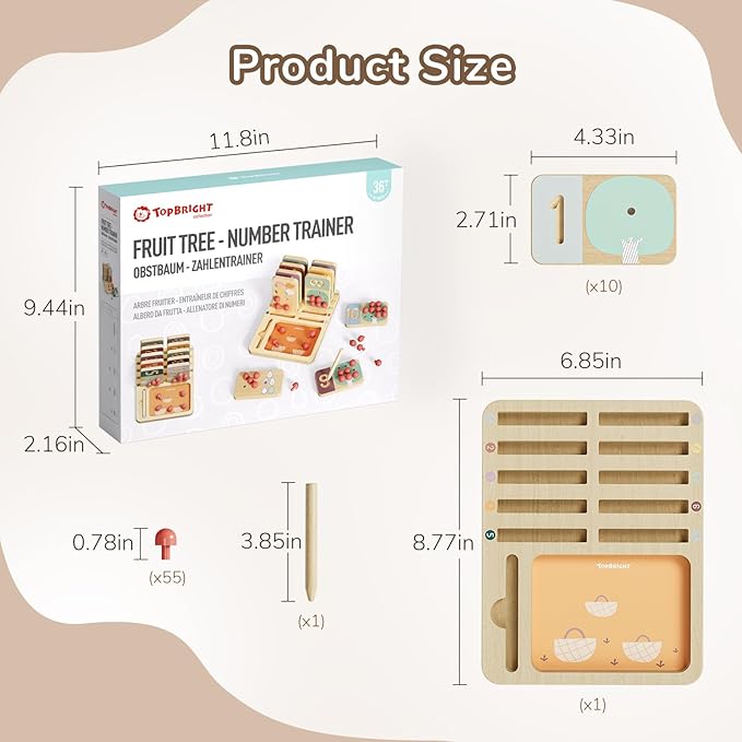 - Early Educational Toy: This 2-in-1 educational toy has two interactive gameplay methods - number tracing and counting peg boards, The counting peg board includes 10 boards, 54 apple pegs, and a charming apple tree appearance. Perfectly designed for kids aged 3+ to enhance their early math skills and cognitive abilities