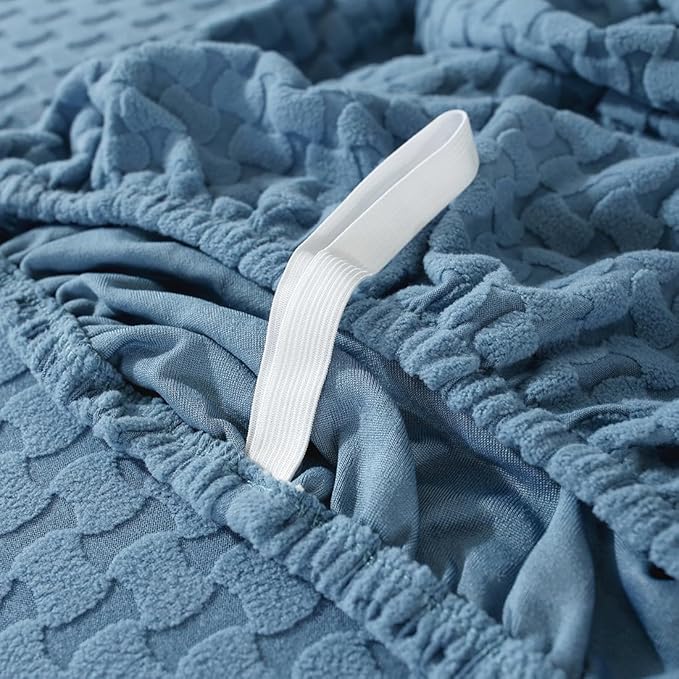 vctops 6 Pieces Jacquard Plush Recliner Loveseat Slipcover Stretch Soft Sofa Couch Cover Anti-Slip Solid Color Furniture Protector with Elastic Bottom for Kids Cats Dogs(Lake Blue,2 Seat)