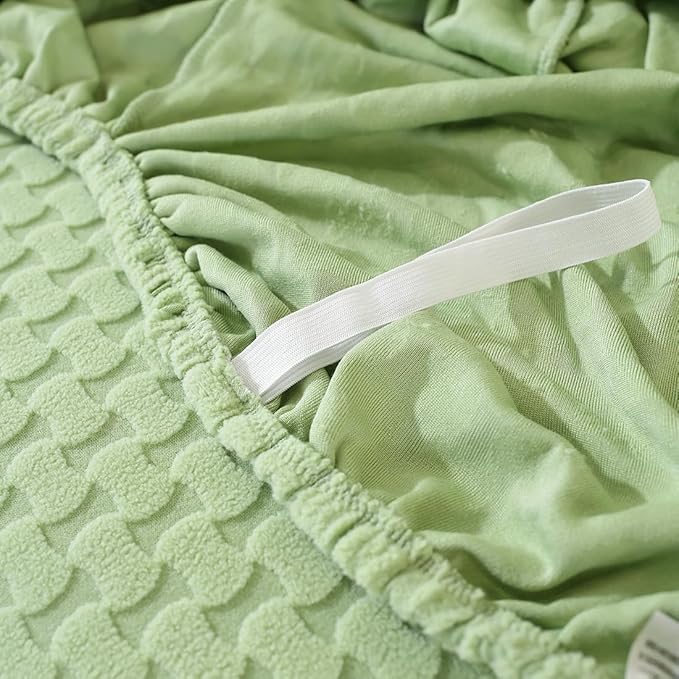 vctops 6 Pieces Jacquard Plush Recliner Loveseat Slipcover Stretch Soft Sofa Couch Cover Anti-Slip Solid Color Furniture Protector with Elastic Bottom for Kids Cats Dogs(Green,2 Seat)