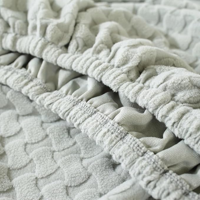 vctops 4 Pieces Jacquard Plush Recliner Slipcovers Stretch Soft Sofa Couch Cover Anti-Slip Solid Color Furniture Protector with Elastic Bottom for Kids Cats Dogs (Light Grey,1 Seat)