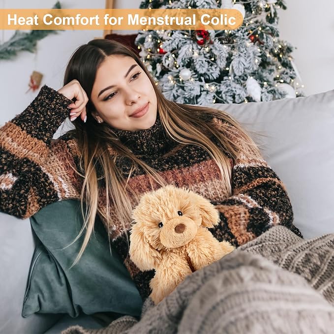 - Say Goodbye to Monthly Discomfort: Don't suffer alone, when you're facing menstruation, let this period heating pad ease your menstrual discomfort! Just microwave our plush dog! Our golden doodle plush can turn into a heating stuffed animal, releasing soothing moist heat to promote circulation for soothing, which is a perfect first period gifts for girls