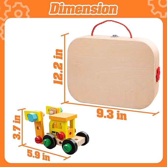 - 【Create 14+ Items with Toy Tool Set】: This kids wooden toy box is a great choice for little builders, offering a vivid and fun building experience game for kids 3 4 5 6 7 8. Different from other products that can only build 6 models, ours construction toys can build 14+, encourages kids to create a wide range of models, such as tech car, trailer, driller, crane, truck and more. This is a great toys for ages 2-4 that can cultivate kids hands-on ability, letting their each day filled with joy.