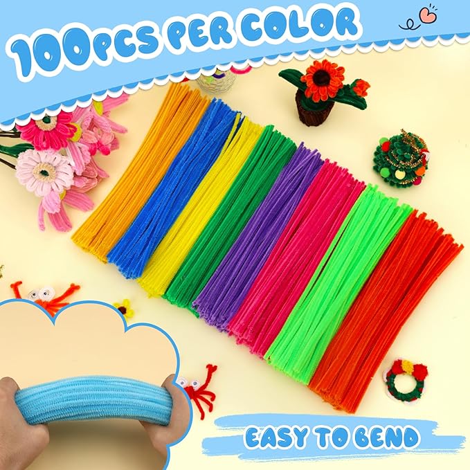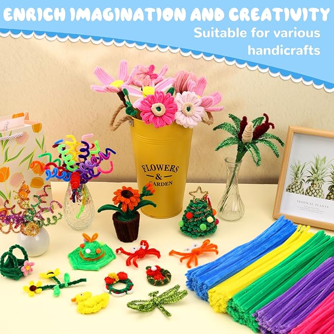- Perfect Present: Pipe cleaners craft supplies are ideal accessory for craft projects such as making flowers, vegetables, animals, holiday ornaments, etc.Suitable for classroom activities, family activities, craft projects, Christmas parties.