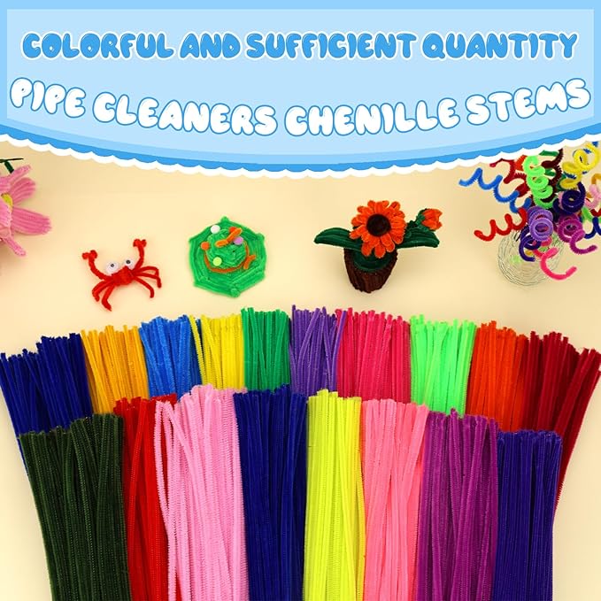 - Premium Quality: Pipe cleaners for cleaning are made of premium wire and fiber, flexible, durable, easy to twist, fold or wrap into different shapes you want.Colorful chenille stems pipe cleaners, not easy to fade, safe and harmless.