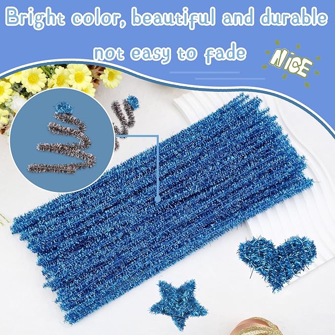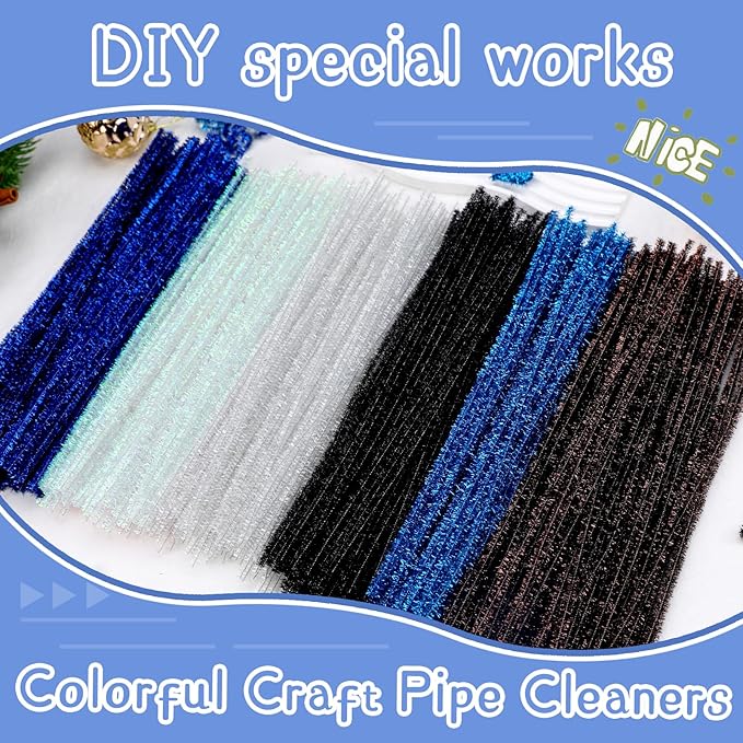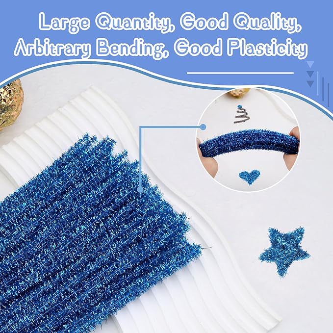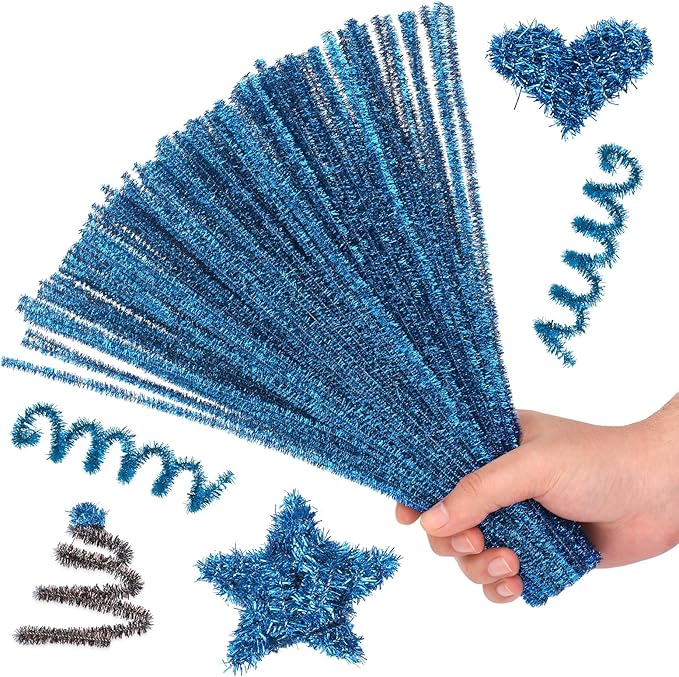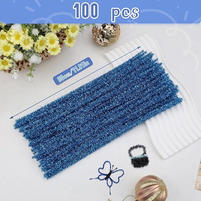 Hssugi Pipe Cleaners, 100PCS Christmas Pipe Cleaners Craft Supplies, Glitter Lake Blue Pipe Cleaners Bulk Fuzzy Sticks for DIY Art and Craft Projects Home Decoration