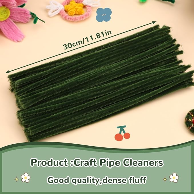 Pipe Cleaners, 100PCS Moss Green Pipe Cleaners Craft Supplies, Pipe Cleaners Bulk Fuzzy Sticks for DIY Art and Craft Projects Home Decoration