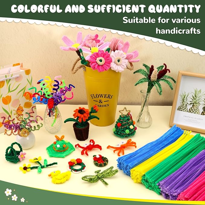 - Perfect Present: Pipe cleaners craft supplies are ideal accessory for craft projects such as making flowers, vegetables, animals, holiday ornaments, etc.Suitable for classroom activities, family activities, craft projects, Christmas parties.