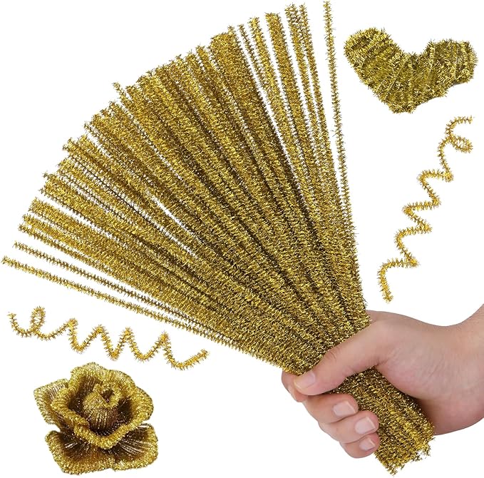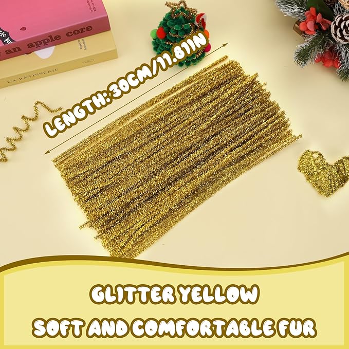 Hssugi 100pcs Pipe Cleaners, Glitter Yellow Pipe Cleaners Craft Supplies,Chenille Stems for DIY Arts Crafts Project(Glitter Yellow)